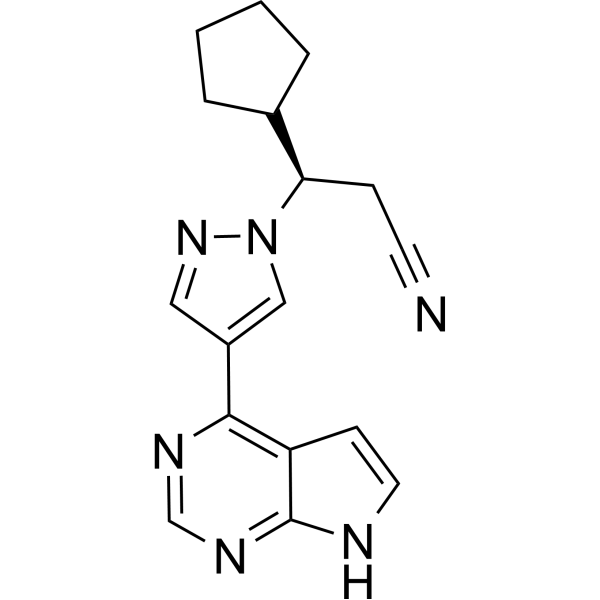Q:鲁索替尼的作用机制是什么? A:鲁索替尼是一种选择性JAK1/JAK2抑制剂,通过阻断JAK-STAT信号通路,抑制异常细胞增殖和炎症反应。它对JAK1的IC50为3.3nM,对JAK2的IC50为2.8nM,对JAK3的选择性高130倍,这种选择性使其能够精准靶向相关病理信号。